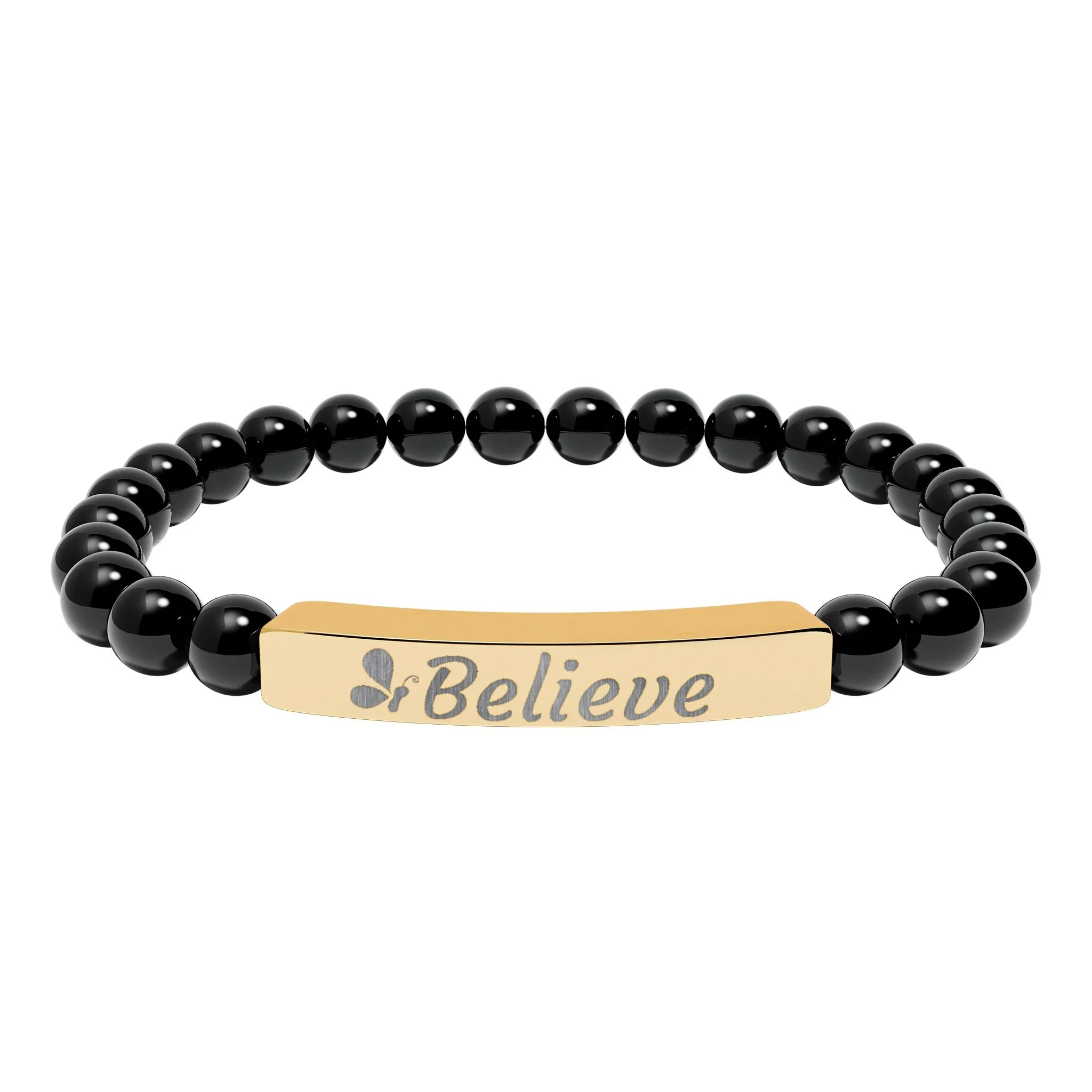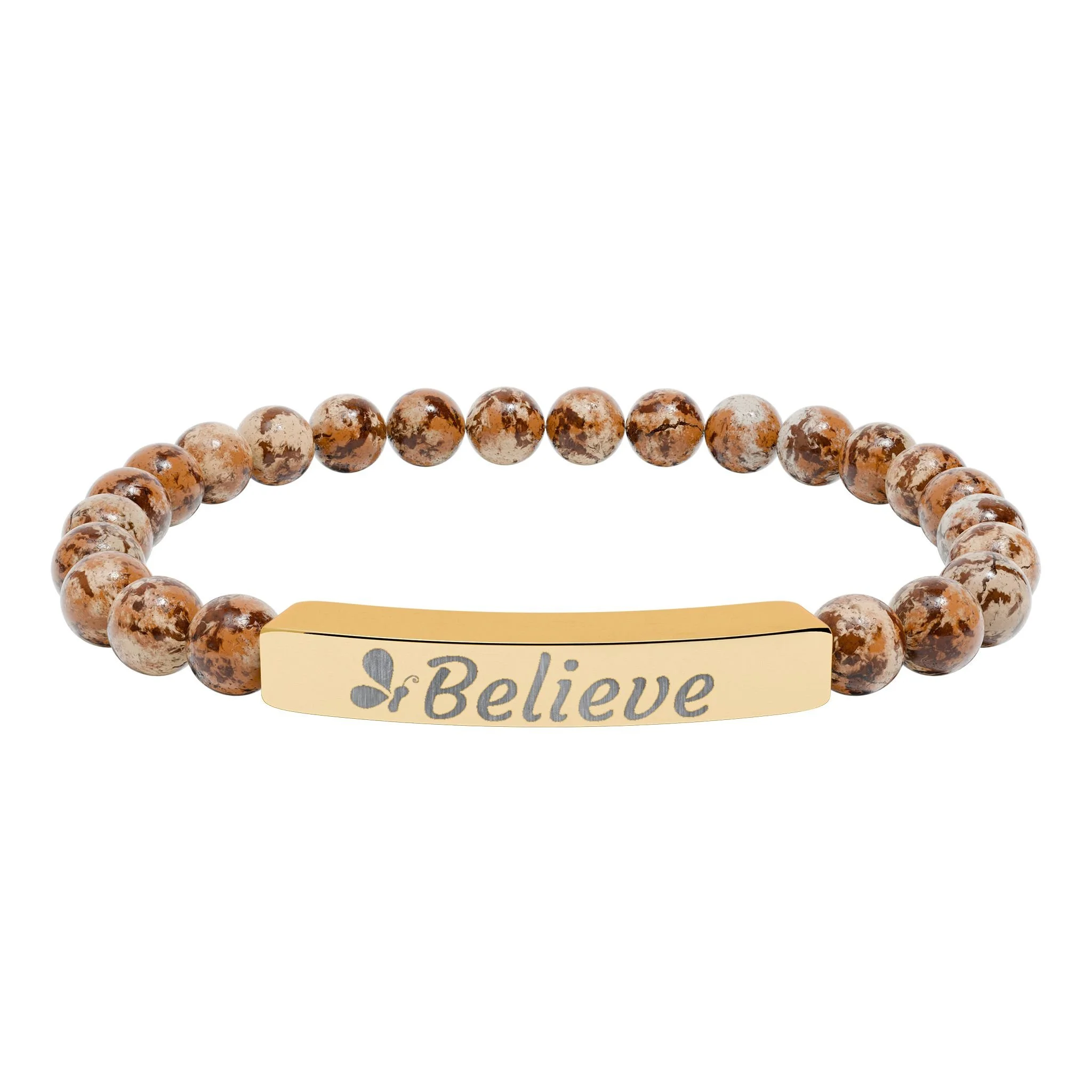 Engraved "Believe" Natural Stone Stretch Bar Bracelet